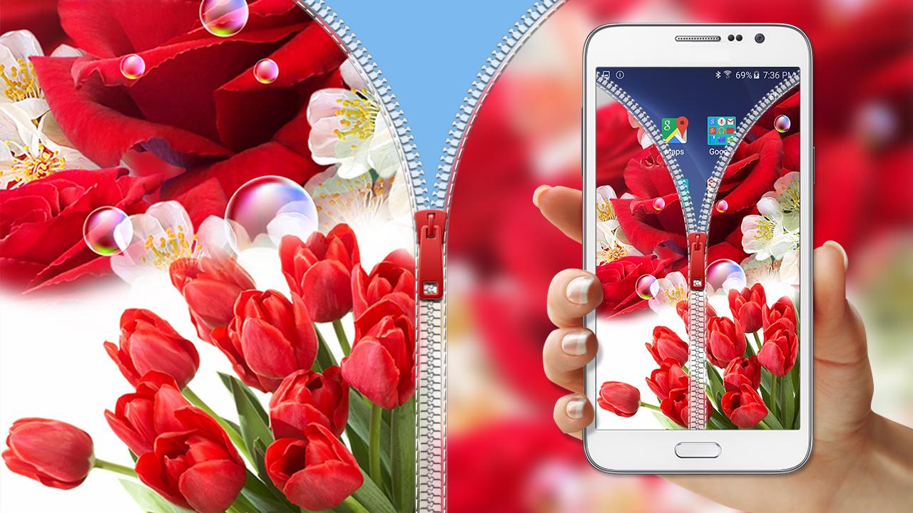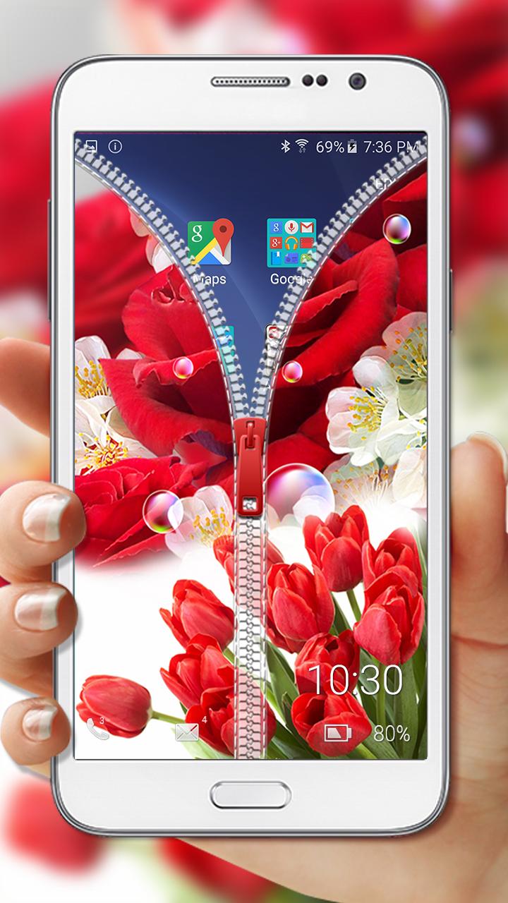 Drag the zipper to unlock your device. Touch and hold the Zipper down until the Red Roses zipper is unlocked.