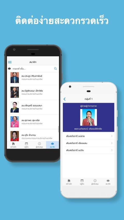 ระบบยังอำนวยความสะดวกในการติดต่อไปยังเพื่อนสมาชิกโดยสามารถกดไปยังสมาชิกที่ต้องการติดต่อ และ กดที่ปุ่มเมนู เช่น โทรศัพท์บ้าน, โทรศัพท์มือถือ, อีเมล์, และไลน์ ได้อย่างรวดเร็ว