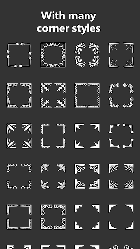 • Change size, color, transparent of corners, frames, and filters.