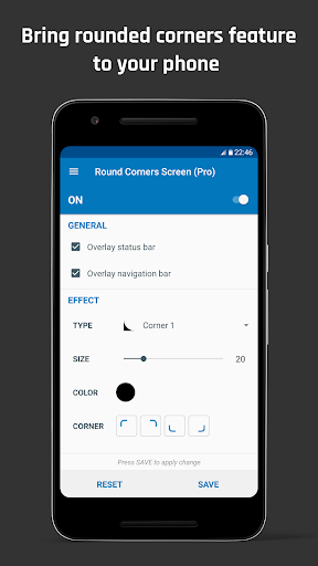 Rounded Corner allows you to feel the smooth look of curved screen and rounded corners like flagship phone LG G6 or Samsung Galaxy S20.