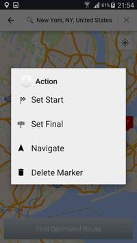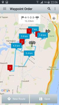 Route planner application allows you to optimize your multi waypoint routes with pinning the waypoints on map.To do so place the locations you want to include on your route on the map by clicking on the locations. The pins will appear on the locations you click. You can add up to 20 waypoints on your route. You can change the start or finish points by clicking on the pins. Once you click on pin the address of that location will be shown on top of map. If you need to navigate to any of the locations you place clicking the navigate button which is on pins menu will direct you to google maps