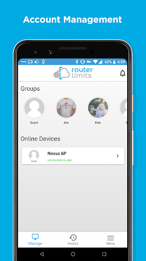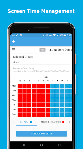 Router Limits™ is an easy-to-use tool designed to monitor and protect online activity. With Router Limits, you can manage screen time, filter content and track browsing history. Router Limits gives you device level control so you can set a bedtime for the younger kids' devices, but still stream your favorite content on your own device. Get your kids back to the dinner table, keep employees focused on their tasks, and take back the internet!