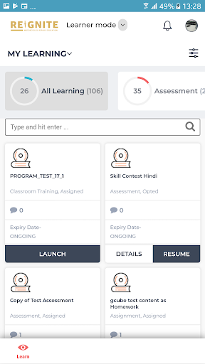 - View Assigned courses and tests