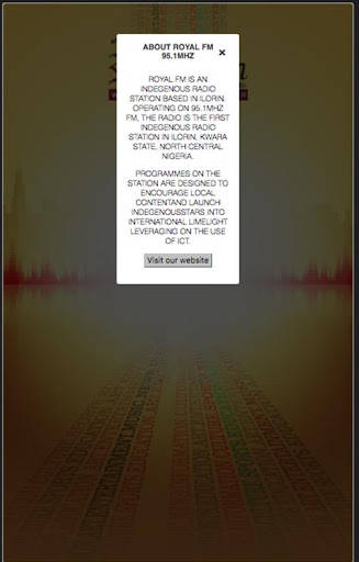 - Listen to the live stream from your favourite radio station, Royal FM 95.1MHz Ilorin.