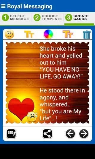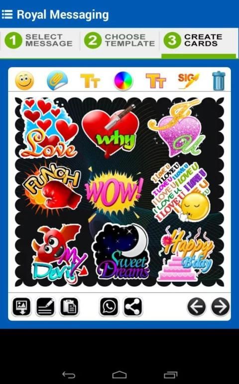 Now you need not to work on writing the messages at all. Just choose the best messages as per your feelings and occassions, select the template, add your icons and stickers and share it with your friends available anywhere like Facebook, whatsapp, email or any existing medium with damn simple interface.