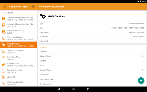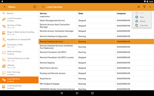 With Royal Server you don't need to connect to the remote desktop anymore. You will see the Windows Events, Windows Services, Windows Processes, Terminal Services and Hyper-V and VMware virtual machines directly in Royal TSD Lite.