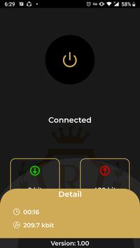 Royal VPN is a lightning Royal VPN app provide free VPN proxy service. Not need any configuration, just simply click one button, you can access the Internet securely and anonymously.