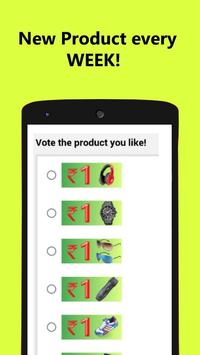 Rs 1 Shop is discount weekly poll based app! Vote the product you like and buy it every sunday! *New product every week *7 products to choose from *You can buy products until stock lasts