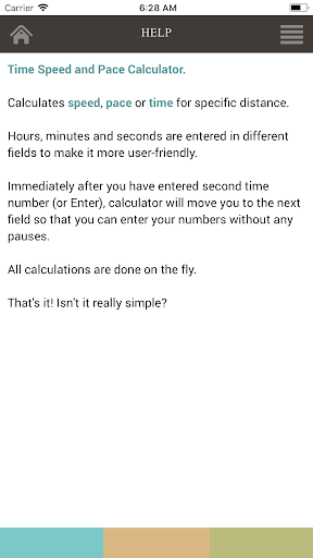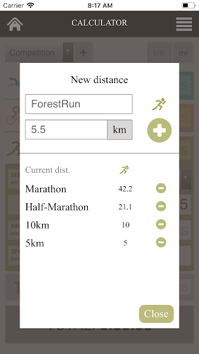 Calculate your time, pace, speed or distance for run on one screen. User friendly input, ability to add custom distances and switch between kilometers and miles.
