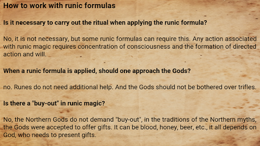 > Instructions for the application of runic formulas in various conditions.