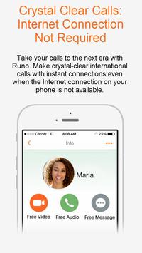 - FREE LOCAL and INTERNATIONAL CALLS: Use Runo to call friends and family for free . You can call your friend next door or a family member that's living in a different country. Runo calls uses your wifi or your phone's