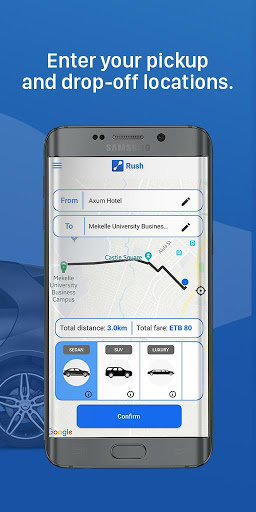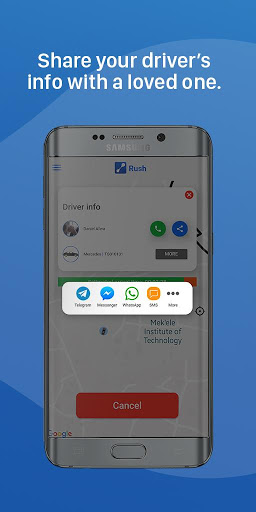 Rush is a ride hailing (on-demand taxi) platform for requesting fast, safe and affordable car travel service in Mekele and other Ethiopian cities.