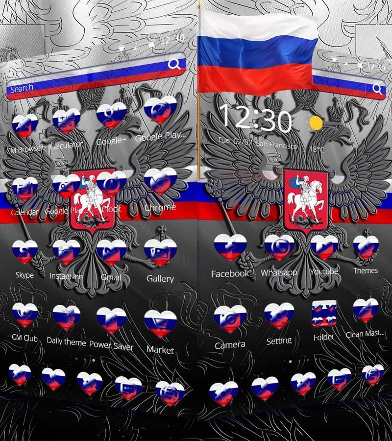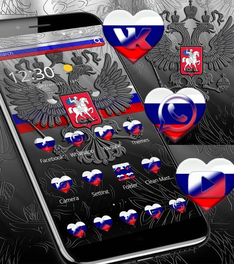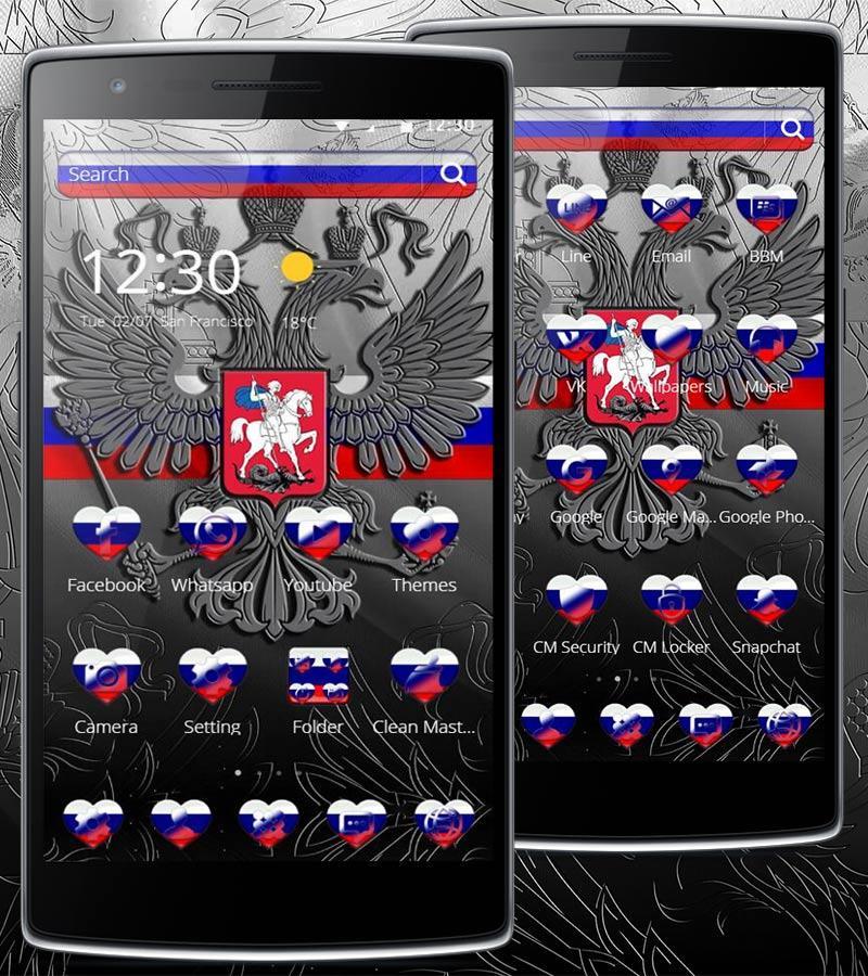 Get Russia Flag theme to celebrate national day with RUSSIAN flag lwp free . It contains hd 3D Russia heart flag live wallpaper with metal 3D style design . It also has Russian flag screen lock and nice flag heart icons for all apps . We love Russia , we love our country. Get an RUSSIAN flag theme for your android now.