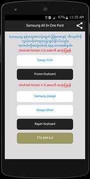 Samsung ဖုန္းေတြအားလံုးတြက္ ျမန္မာစာႏွင့္ ကီးဘုတ္ကို လြယ္လင့္တကူထည့္သြင္းနိုင္တ့ဲ Samsung All In One Font မိဘိုင္း Application ေလးကိုတင္ေပးလိုက္ပါတယ္။