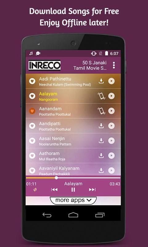 तो, अब एप्लिकेशन डाउनलोड करें और, पर नाली पर अपने पसंदीदा तमिल एस जानकी द्वारा गीत हिट!