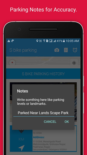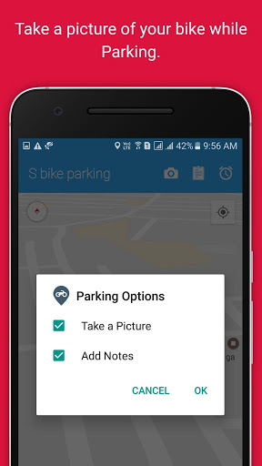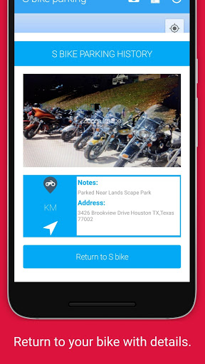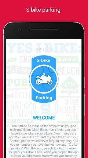 S bike parking is new hot app for Bikers, to tackle the complicated task of parking with the help of Android Device, These days in a highly busy world the parking system is not accurate and we park our bike on a road side, stadium, shopping malls, hotels, public places etc and after completion of you work, you don’t have a clue where your bike is. Fortunately, you haven’t lost your Android phone, which never forgets anything and with this new app “S bike parking!”, you click a "PARK HERE" BUTTON when you park your Bike, Later, when you reopen the app, it gives you directions from where you currently are to the bike parked location. To make parking system easy we introduced you this app!