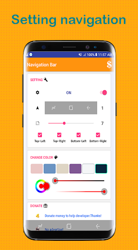 "Note10 - S10 Navigation Bar" is simple app have settings which allow you adjusting the corners radius easy same with S9, S9 , S8, Note 10.... You can select a color for corners to suite your mobile.
