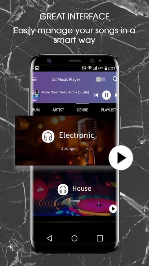 S8 Edge Music Player brings you a simple and understandable interface, support dynamism to the app. A list of functions drops in the left of your screen, you can quickly choose the artist, song and album in one touch.