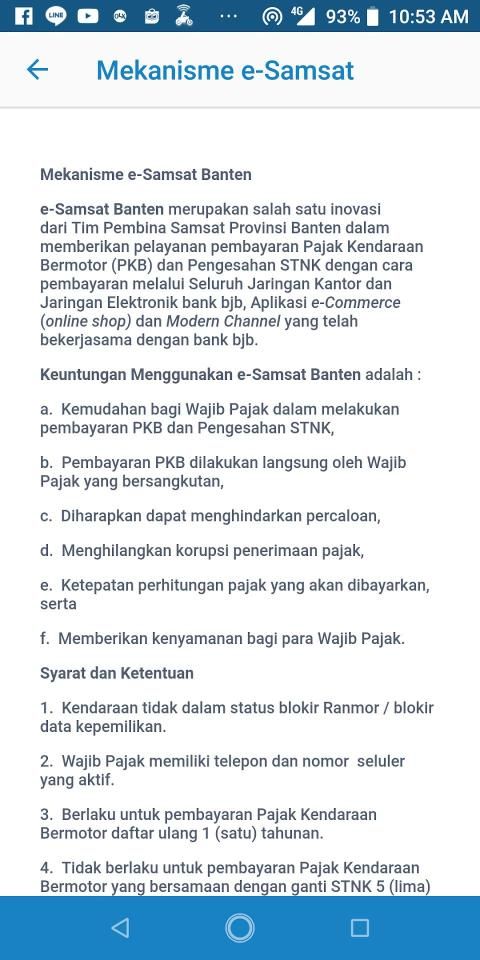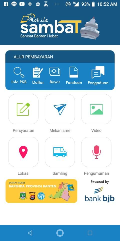 Banten e-Samsat is one of the innovations of the Banten Province Samsat Advisory Team in providing motor vehicle tax payment services (PKB) and vehicle registration authorization by way of payment through the entire Office Network and bank bjb Electronic Network, e-Commerce (online shop) and Modern applications Channels that have collaborated with bank bjb.