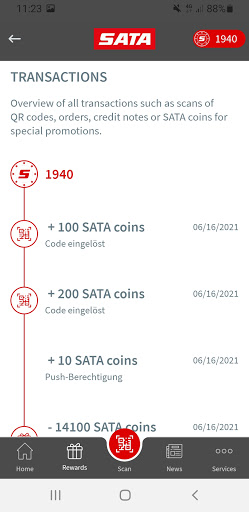 Here you will find Loyalty QR codes that you can scan to collect SATA coins