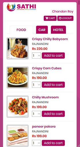 SATHI FCH is Kolkata, India Based Company we provide local, area based services. Our main aim is to server Quality & quick services to our customers. Our main service is Food delivery, we take order from customer (area based) customer can also choose their nearest restaurants and we deliver it very quick to customer. We also provide Area based Car booking and Hotel Booking through our application.