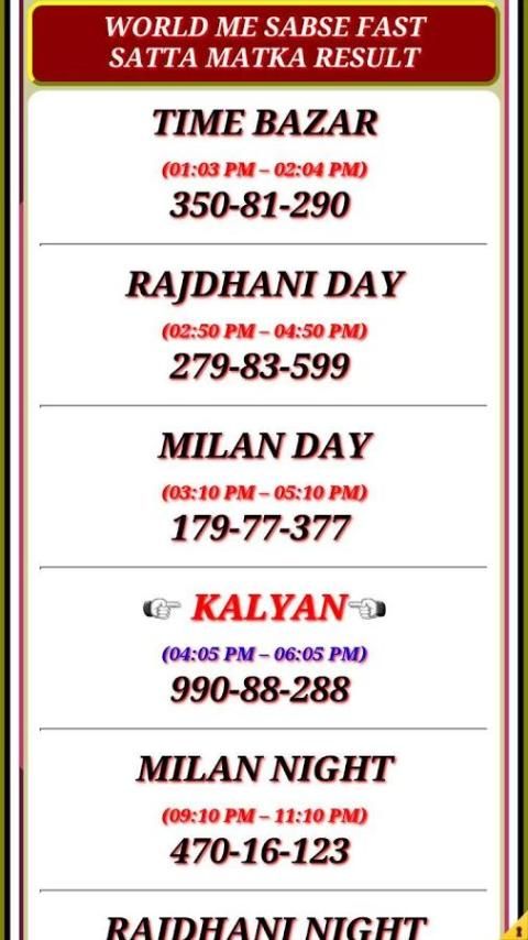 Get the best free apps for your android phones. 30,000+ users downloaded KALYAN MATKA FIX latest version on 9Apps for free every week! In my opinion, you will like this app after use it. This hot app was released on 2017-08-19. If you like it, just download and enjoy this app!
