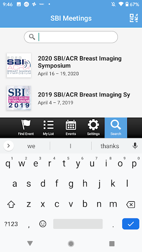 The SBI Meetings mobile application allows you to view the schedule, presentations, exhibitors and speaker details from the conference. Users can take notes adjacent available presentation slides and draw directly on slides inside the app. Note-taking is also available in the posters and exhibitors modules.