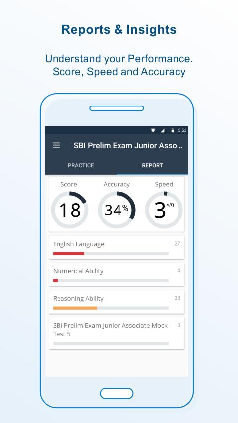 Visit the report section of the SBI App after each practice test to take a look at your performance on the test and how many answers you got right and how many you got wrong.