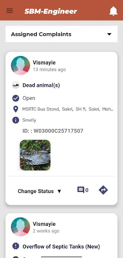This app is designed solely for Sanitary Engineers working in municipal corporations across India. As a registered Sanitary Engineer, this app will facilitate your work by incorporating the ease of technology into your job. The app will allow you to connect directly with citizens who report Swachh-Bharat issues and address the cases in real time.