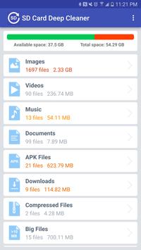 SD Card Deep Cleaner would thoroughly scan the device's SD Card and summarize files by 10 different categories -