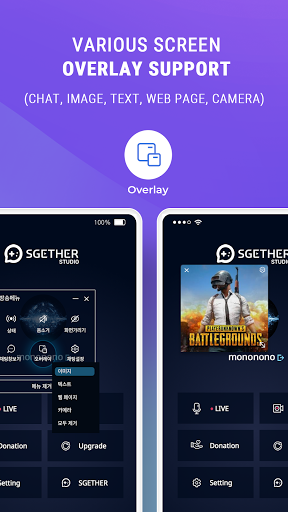 • Supports various screen overlays. (Chat, Image, Text, Web-page, Camera)