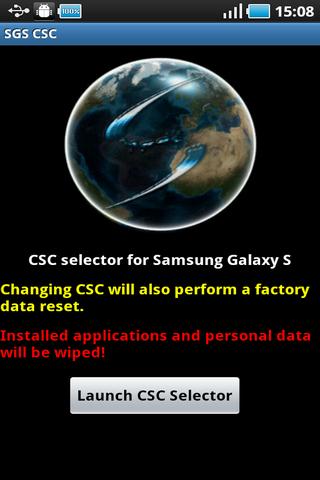 Samsung galaxy SS2 CSC Selector is a simple application that automatically launch the CSC selector. No need to remember the secret code to access this selector.THE APP JUST DISPLAY THE CSC INCLUDED IN THE ROM, IF THE WANTED CSC IS NOT DISPLAYED IT39;S NOT A LIMITATION OF THE APP BUT A LIMITATION OF THE INSTALLED ROM.WARNING: Changing the CSC will also perform a factory data reset. Installed applications and personal data will be wiped