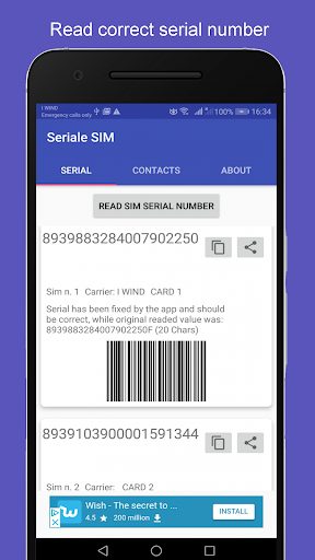 - Fast and smart app that reads sim card serial number, gives you the barcode (very useful for the store employees) and gives you the possibility to copy or share your sim serial number.