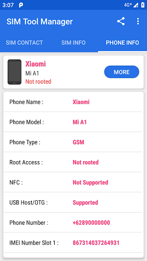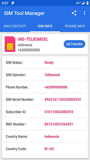 For other feature you can see the detailed information about your sim card, device and network operator.