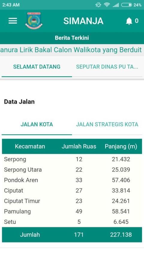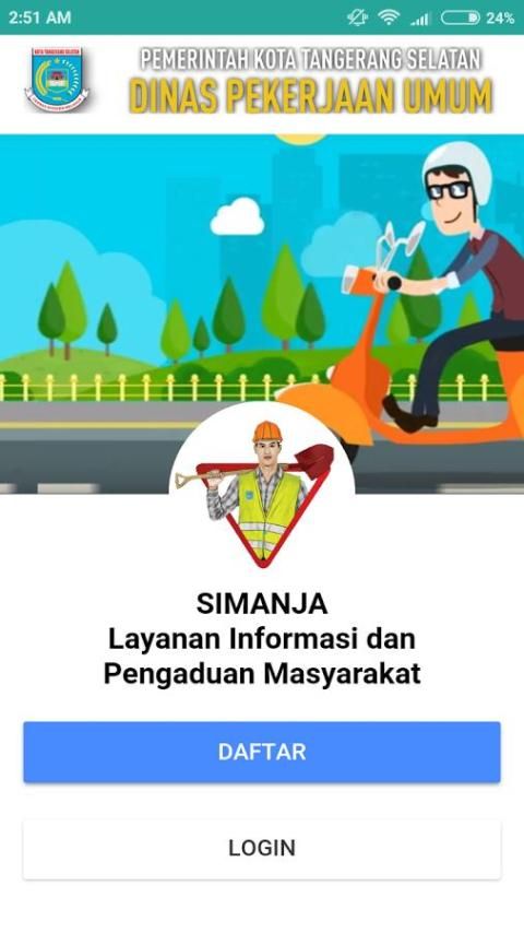 SIMANJA adalah aplikasi pelaporan resmi warga milik Dinas PU Pemerintah Kota Tangerang Selatan yang berfungsi sebagai komunikasi antara warga dan Dinas PU Pemerintah Kota Tangerang Selatan