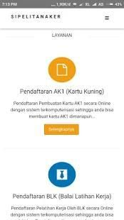 Adalah Aplikasi untuk membantu calon tenaga kerja untuk pendaftaran AK1 (Kartu Kuning) dan pendaftaran Balai Latihan Kerja.