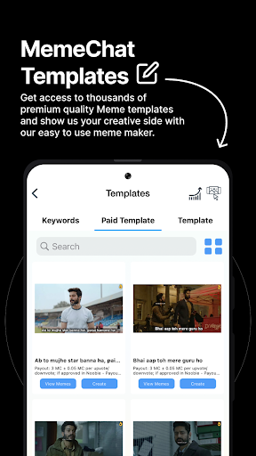 Look out for Paid Templates & Requested Memes section. Make memes on various TV shows, products or perform easy tasks to get rewarded with MemeChat Coins which you can later redeem into real money!