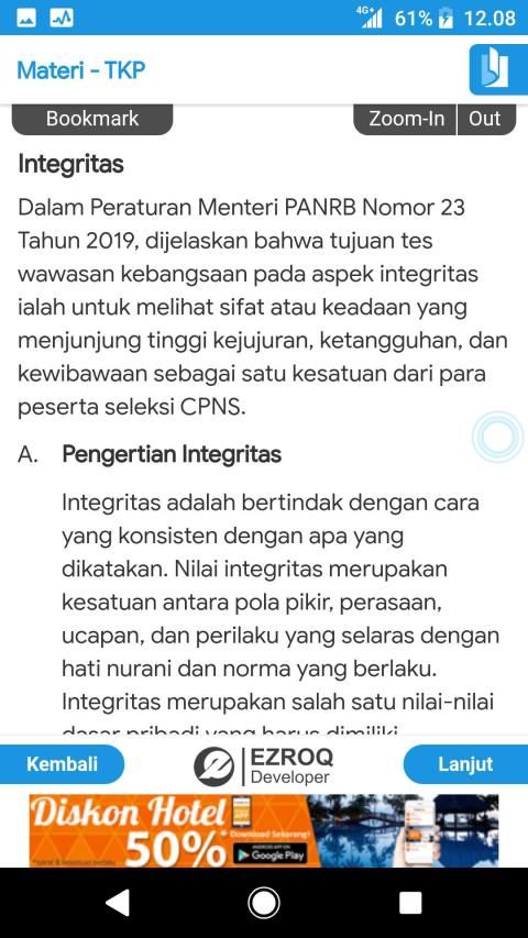 Aplikasi SKD CPNS 2019 - 2020 dari ezroq developer adalah aplikasi yang membantu para calon pegawai negeri sipil atau aparatur sipil negara dalam belajar dan memperoleh informasi terbaru terkait dengan seleksi CPNS 2019 - 2020. Aplikasi ini mengacu pada Peraturan Menteri PANRB Nomor 23 Tahun 2019 tentang Kriteria Penetapan Kebutuhan Pegawai Negeri Sipil dan Pelaksanaan Seleksi Calon Pegawai Negeri Sipil Tahun 2019. Oleh karena itu, aplikasi ini sangat cocok bagi para calon PNS/ASN.