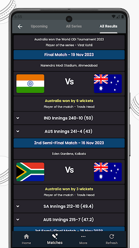 The app has the best user-friendly interface that makes navigating and accessing the live Cricket scorecard and content effortless. The app is based on a dark theme, ensuring it is visually pleasing and easy on the eyes. All these features make this the best live Cricket score app in all senses and we hope you all will love this app.