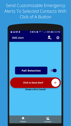 Sends SMS alert messages to emergency contacts entered by the user. In case of emergency the user pushes a button to send SMS messages to pre-identified contacts. The messages are sent all at once to all the emergency numbers. No SMS messages are received or processed by this app at all, and user privacy is preserved. This app does not share any information with any other party, or any servers, it only sends SMS messages.