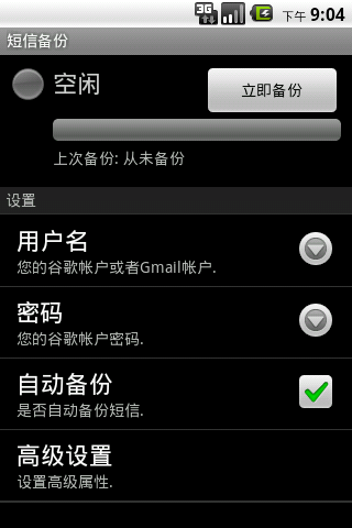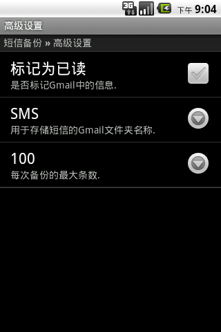 Back up your messages SMS to your gmail mailbox. You can specify the folder name of the store set the maximum number of backup every time, whether the automatic backup.