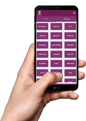 SMS Pagla is a cool Bangla Text SMS based Messaging Application. Through this app you can share or send Bangla Text SMS Message with your friends and family. This application is in totally Bengali interface. You can also share those with your friends through Facebook ,Whatsapp , Imo , Twitter and other social network.