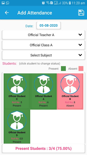 2. Search Attendance by Date, Teacher, Class, Subject and Publish Status