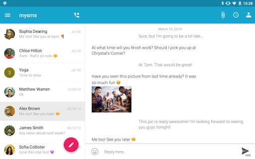 Leave your phone in your pocket and send/receive SMS text messages on your tablet. Your SMS inbox is synced with your phone.
