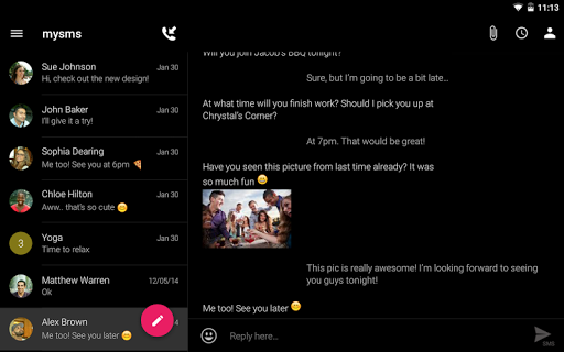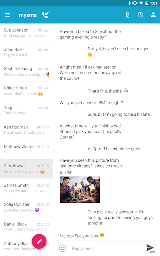 *** PLEASE NOTE: This app is not self-contained.To be able to use mysms tablet, you have to have mysms installed on your Android smartphone. ***