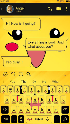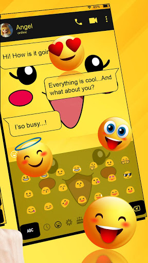 : Beautiful SMS Yellow Cartoon Keyboard Theme, cool chatting sms keyboard theme, yellow cartoon SMS keyboard theme or glow shiny SMS keyboard theme or 2018 new keyboard themes, etc. Just choose what you love.