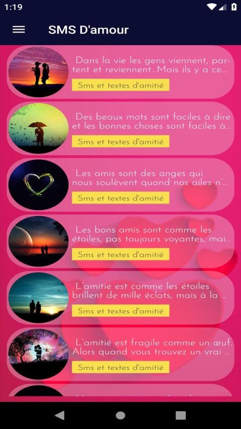 Thanks to Best Love SMS in French , you can send romantic and touching love messages to your heart, your partners, your friends, your girlfriend, your girlfriend ...