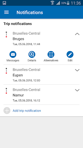 The SNCB app offers a complete view of all public transportation information in Belgium. The multimodal travel planner calculates the fastest door-to-door journey, optionally with GPS. Bus, metro and train departure schedules are readily available and train information is always given in realtime. Departure and arrival schedules also can be consulted for a station of your choice. Another option is to search on train number. Furthermore, network disturbances are available in realtime and you have the possibility to receive alerts when your train is delayed.
