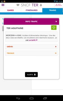 • Etre informé des perturbations : Disposer de l’information sur l’état du trafic en temps réels tout au long de votre parcours, en étant informé de la durée et du motif de la perturbation à chaque gare desservie et/ou étape de votre trajet.