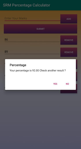 This app will help you in calculating your percentage. So that in future you won't be surprised by the percentage received by the college. We help you in removing any uncertainty about your percentage.